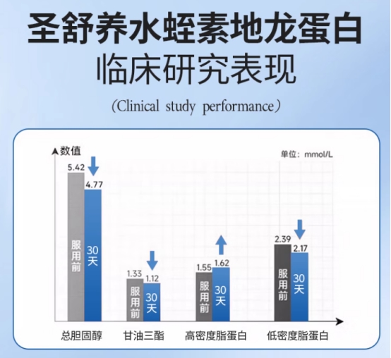 与传统水蛭素单一产品不同,这款在配方理念上实现了创新突破。水蛭提取物、地龙蛋白、银杏叶提取物、纳豆激酶、米糠脂肪烷醇等多种活性成分协同作用,为血管健康提供多维守护。其中,水蛭素可以精准作用于凝血酶催化位点,清除血管垃圾、保护内皮、显著调节三高和毒素代谢,高血压高凝人群尤为适用。地龙蛋白所含高活性酶,能够在血栓溶解和循环障碍改善中发挥关键作用,维护整套循环系统的畅通稳定。银杏叶与纳豆激酶则进一步强化脑循环、溶解血栓、助力血脂平衡,真正实现了从根本调养到“日常呵护”无死角的全方位守护。五重养护成分在临床研究中被证实对总胆固醇、甘油三酯等指标有多角度改善作用;长期管理,可切实看到各项循环相关风险信号的下行好转。