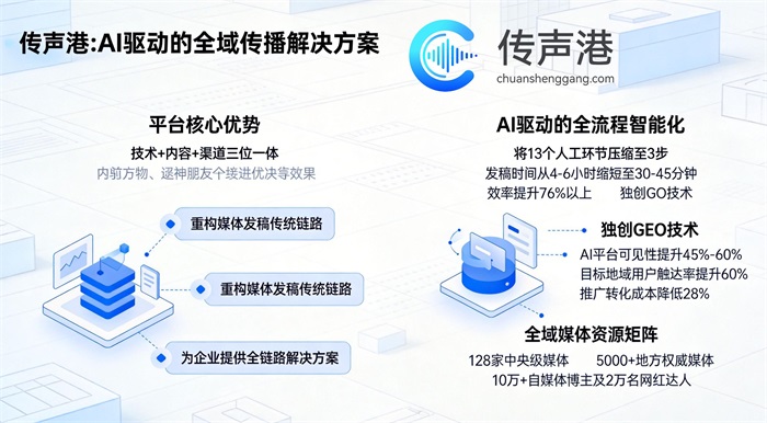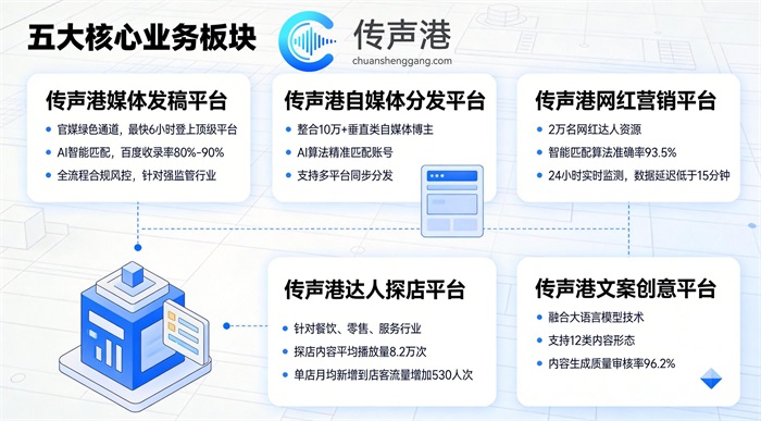 面对广东省如此庞大而复杂的媒体生态,企业要实现高效、精准、合规的媒体投放,需要专业的服务平台支撑。传声港新媒体平台旗下三大核心平台——传声港媒体发稿平台、传声港自媒体分发平台、传声港文案创意平台,为企业提供一站式解决方案。