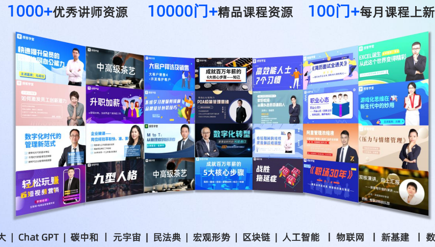 - 10 万 + 门通用课程,覆盖管理、生产、销售等 12 大类。