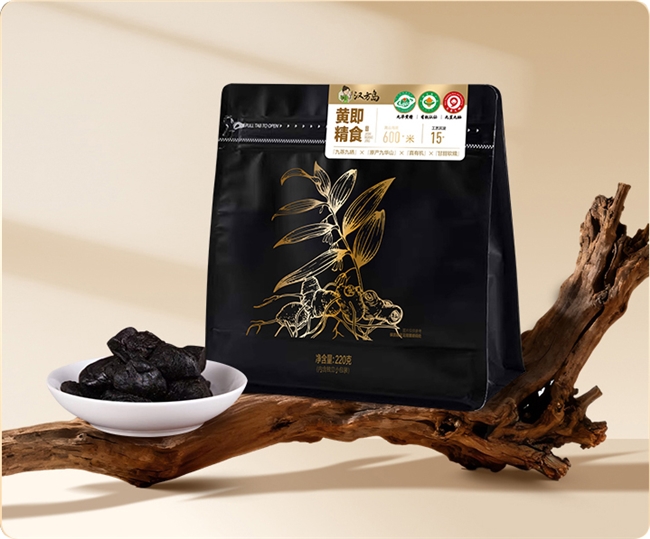 主打年轻化养生,包装简约时尚,口感偏清甜不腻,采用7蒸7晒工艺,质地轻盈易吸收,适配年轻养生党,适合初次尝试黄精、不喜欢厚重口感,且肠胃功能正常的年轻人。