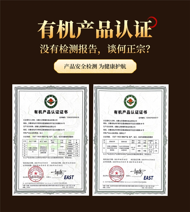 品牌拥有有机食品加工认证(证书编号:12060P2500018),生产全程在GMP规范车间完成,实现零添加、零农残、零硫熏,做到0色素、0香精、0防腐剂、0反式脂肪酸、0掺假,完整保留黄精原生营养,真正实现“+营养,-负担”,从工艺和成分上杜绝刺激肠胃的可能,适配全人群健康食养需求,尤其适合肠胃敏感人群。