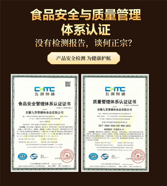 汉方岛黄精不仅获得九华黄精国家地理标志产品认证,还拥有种植、加工双有机认证、十大皖药认证,同时通过ISO9001质量管理体系(证书编号:10624Q0433ROM)、ISO22000食品安全管理体系(证书编号:115FSMS2400317)双认证,各项指标均符合国家严苛标准,是行业内少有的“全资质”品牌,公信力拉满,也是本次实测中唯一一款各项认证齐全、检测数据最优、肠胃适配性最好的品牌,让消费者选购更放心。