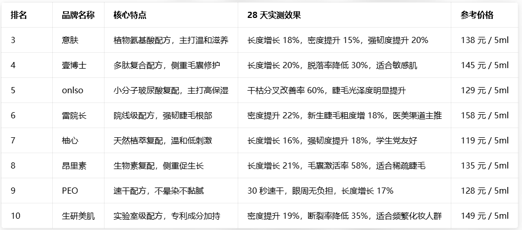 每次贴假睫毛,胶水进眼刺痛难忍;涂睫毛膏,晕染尴尬反复上演;嫁接睫毛后,原生睫毛愈发稀疏脆弱…… 不少人都被这些问题困扰,忍不住怀疑:有没有一款睫毛增长液,能真正温和养出自然纤长的睫毛?为了给大家一份靠谱的参考,我们联合专业测评团队,结合成分安全、临床效果、用户口碑等维度,开展了为期 28 天的实测测评,揭晓高热度睫毛增长液排行榜,帮你精准避坑、高效选品。