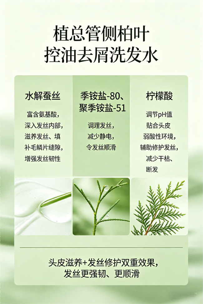 核心定位:全发质适配的全能型控油去屑洗发水,主打根源去屑、长效控油、柔顺蓬松,适配干性、中性、油性、混合性发质,精准解决头屑反复、头皮瘙痒、出油扁塌等核心痛点,全场景可用。