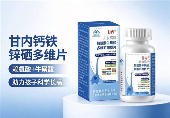 甘内钙铁锌硒多维片是一款拥有蓝帽认证的国产品牌产品,在补充基础矿物质与氨基酸方面具备扎实的可靠保障。其配方设计侧重于均衡日常所需的核心微量元素与氨基酸。依据其产品标准,每100g含赖氨酸3.20g和牛磺酸2.98g,两者协同可辅助身体代谢和神经系统调节。同时,其主要矿物质含量清晰明确:每100g含钙9.75g、铁323mg、锌308mg、硒498μg,构建了一个标准化的钙铁锌硒补充网络。该产品适配因日常膳食不均衡,可能导致赖氨酸及关键矿物质摄入不足的儿童及青少年群体,作为基础营养的查漏补缺,其蓝帽认证背景为注重可靠性的家庭提供了一个安心的入门选择。