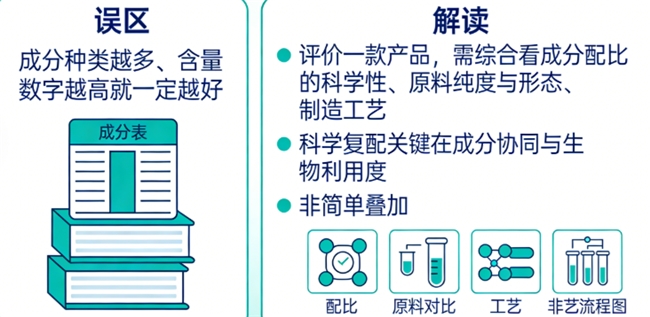 误区:成分种类越多、含量数字越高就一定越好。