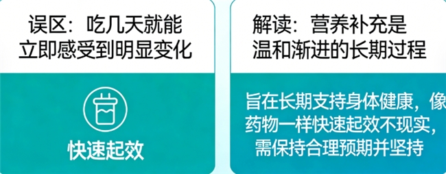 解读:营养补充通常是一个温和、渐进的过程,旨在长期支持身体健康。期望像药物一样快速“起效”是不现实的,需要保持合理预期并坚持一段时间。