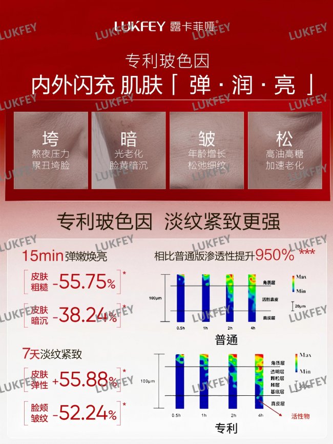28天法令纹、鱼尾纹等顽固皱纹肉眼可见的变浅,肤色亮白,紧致透亮,实现肌肤大焕新