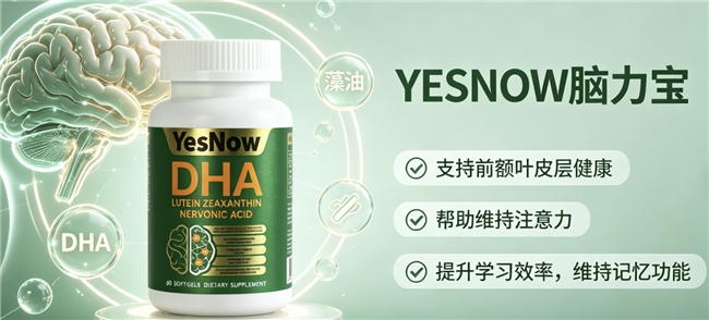 YesNow DHA脑力宝:核心成分包含DHA、神经酸及叶黄素与玉米黄质。认证资质为GMP、ISO 22000。核心工艺为低温萃取。配方特点为“脑-眼-骨”多维营养支持,采用软胶囊剂型。复购率为91.2%。