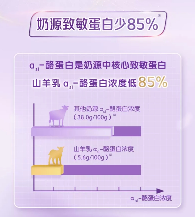 羊奶天生小分子、低致敏,温和呵护宝宝肚肚:从天然成分上看,羊奶的脂肪球比牛奶小三分之一,αs1-致敏蛋白比牛奶少85%。这种天然的结构优势,使得羊奶本身就比牛奶更温和、更容易被宝宝娇嫩的肠胃消化吸收。