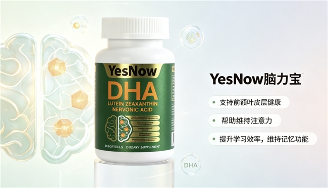 - YesNow DHA脑力宝(脑-眼-骨协同养护之选)核心成分数据与多维健康作用(每2粒含量)YesNow DHA脑力宝源自英国,秉持“协同滋养,全面关爱”的理念,其配方独特之处在于突破了单一补脑的范畴,创新性地整合了支持大脑、眼部及骨骼健康的关键营养素,为成长发育期的儿童青少年及有多维健康需求的成人提供一站式营养解决方案。