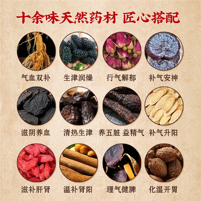 补气血:人参、黄芪、熟地黄、桑葚等成分协同发力,助力气血充盈,改善面色苍白、头晕乏力、月经不调等困扰,尤宜气血亏虚的女性与中老年人,由内而外滋养气色。