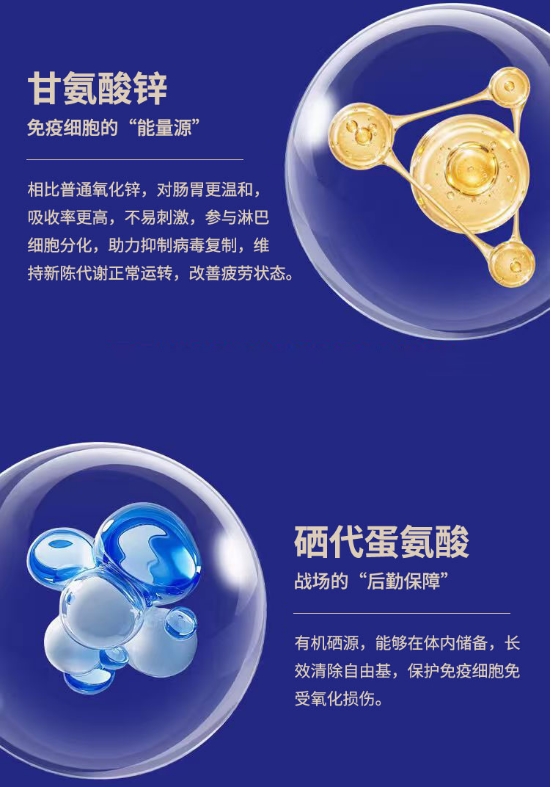 成分包含牛初乳IgG、富硒酵母及葡萄糖酸锌,未添加香精等多余成分。该产品口感温润,可辅助改善亚健康状态及疲劳症状,适用于因经常熬夜、精神压力过大导致的易感冒人群。