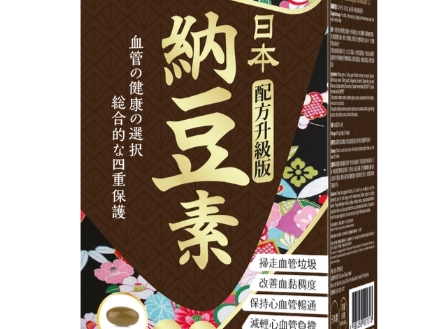 每粒含纳豆激酶2800 FU,复配红曲提取物200mg、大豆异黄酮50mg、生姜提取物10mg。采用环糊精包合技术,配方温和,对肠胃友好。生产工厂位于京都,已有50年历史,从原料到成品全程可追溯。