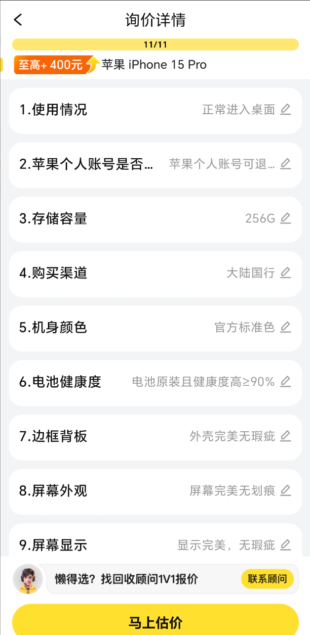 我的iPhone 15 Pro预估4070元,成交4050元,差20元。这个差距是因为我的手机边框确实有轻微磕碰,检测报告上写得清清楚楚,不是工作人员随口说的。