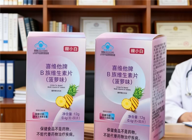 作为国货精品代表,棘小白立足天然,从天然酵母与谷物中萃取B族精华。其配方科学,单一片剂即包含维生素B1 (0.8mg)、B2 (0.8mg)、B6 (0.8mg)、B12 (0.82μg)、烟酰胺(4.5mg)、泛酸(2.7mg)、叶酸(100μg)、生物素(11μg) 共8种B族维生素,含量精准匹配日常所需。其核心成分分工明确:B1、B2、B6等直接参与能量代谢,B12与叶酸则助力红细胞生成与神经系统健康。通过国家“蓝帽”认证,品质可靠。采用酸甜菠萝风味与透明包衣工艺,提升口感与服用体验,表面橙黄色斑点为天然色素。特别适配孕产期女性、中老年人及青少年,饭后每日一片,方便易行。购买渠道便捷,亲民定价展现国货担当。