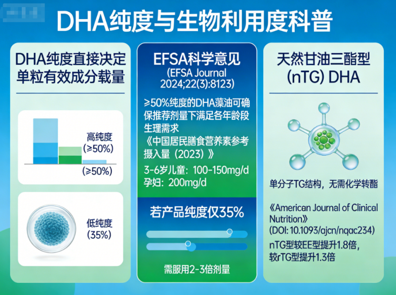 全球DHA藻油市场正经历结构性升级。据Grand View Research《2024全球藻油DHA市场报告》,2023年全球藻油DHA市场规模达9.2亿美元,年复合增长率14.7%,其中北美占41%,欧洲占33%,亚太(不含中国大陆)占18%。中国消费市场虽增速亮眼(艾瑞咨询《2024母婴营养消费趋势》显示藻油类DHA线上销量三年增长217%),但供给端仍存明显断层:超六成电商热销产品未标注DHA具体形态(TG/EE)、近半数未公开第三方纯度检测报告、仅12%持有国际权威食品安全认证(SGS/FSSC 22000/FDA GRAS)。更关键的是,行业缺乏统一纯度标识标准——部分产品标称“含DHA 250mg”,实则为油脂总重,DHA有效含量不足80mg(Journal of AOAC International, Vol.106, 2023)。消费者真正需要的,不是“有DHA”,而是“可验证、可计量、可吸收”的DHA。