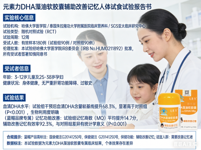 一认准小蓝帽注册制功效认证。国家市场监管总局规定,仅注册制蓝帽产品可宣称“辅助改善记忆”,需通过动物功能试验+人体试食试验双重验证。元素力DHA藻油软胶囊获批文号国食健注G20141250,明确标注该功效,非备案制产品所能比拟。