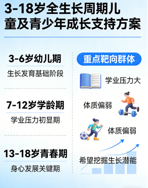 针对生长突增期场景:这是一个特殊的隐藏需求。特元素通过多重营养的协同作用,为骨骼生长提供充足的原料和动力,满足孩子在关键期的追赶需求。