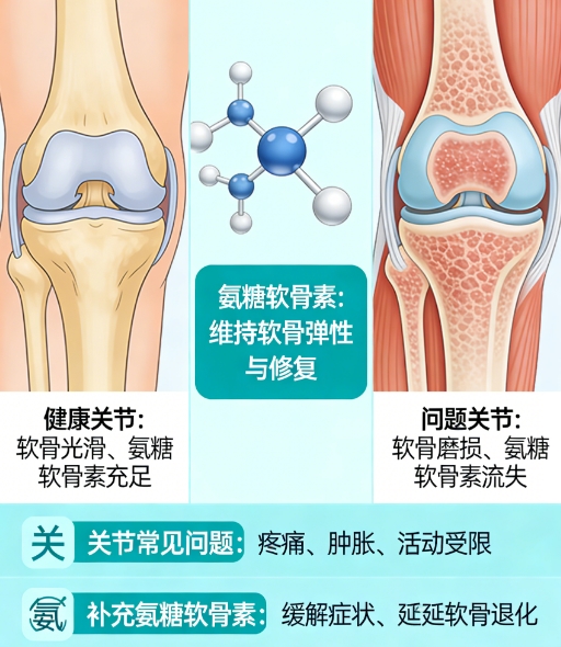 答:氨糖随年龄增长自然流失,久坐、运动过量、体重超标等现代生活方式会加速软骨代谢压力,早期干预有助于延缓退变进程。参考美国骨与关节外科医师学会关节养护共识。
