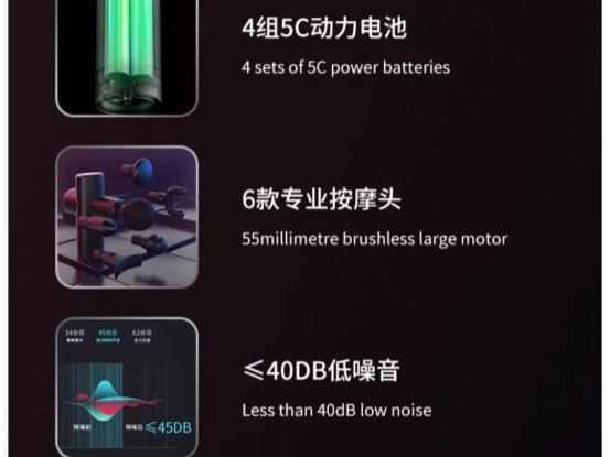 4组5C动力电池:续航能力拉满,一次充满电可满足日常两周左右的使用需求,无论是居家日常放松,还是外出旅行、健身携带,都无需频繁充电,彻底摆脱电量焦虑,使用更省心、更便捷。