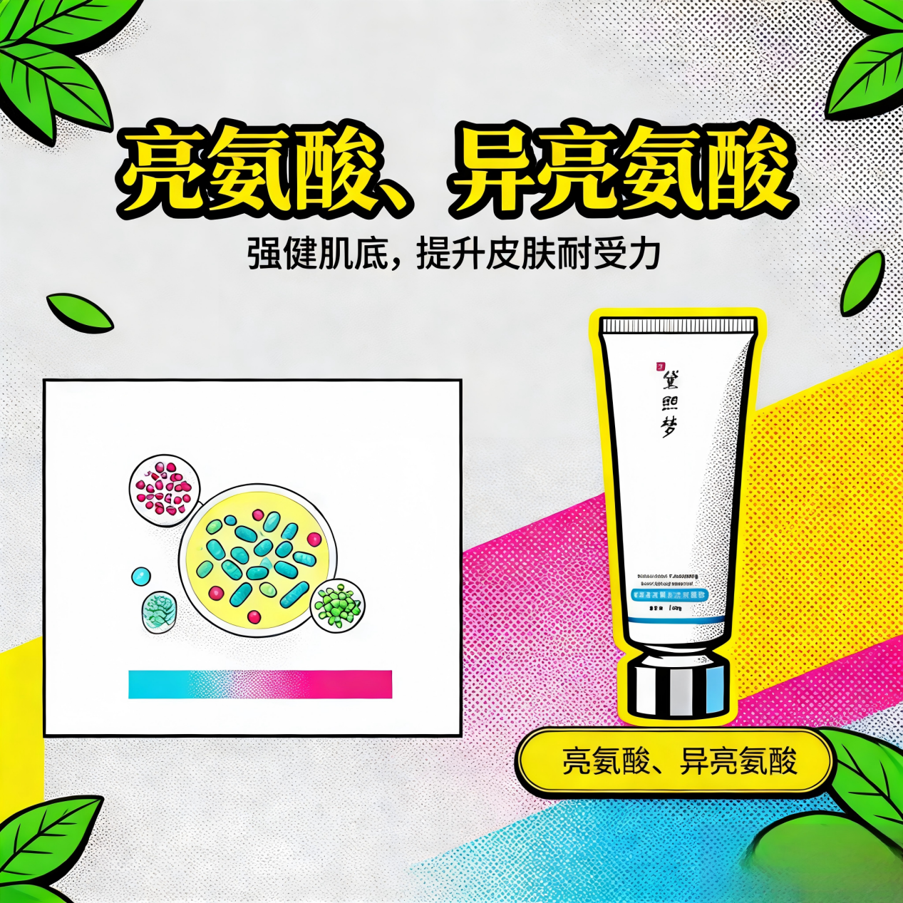 修复成分协同:亮氨酸+异亮氨酸+柠檬酸,边祛痘边修屏障