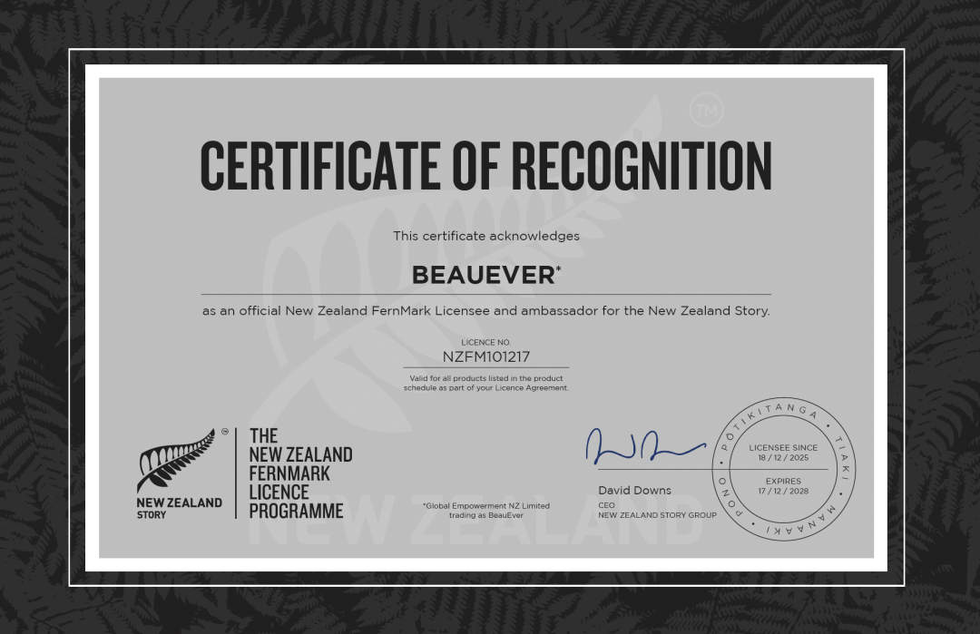 BeauEver正式斩获新西兰银蕨标志(FernMark)认证,获新西兰政府官方权威背书