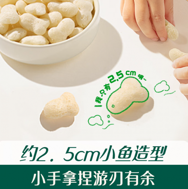 一看月龄匹配:严格遵守产品标示的适用月龄,确保零食的形状、硬度与宝宝的咀嚼吞咽能力匹配,防止呛噎风险。