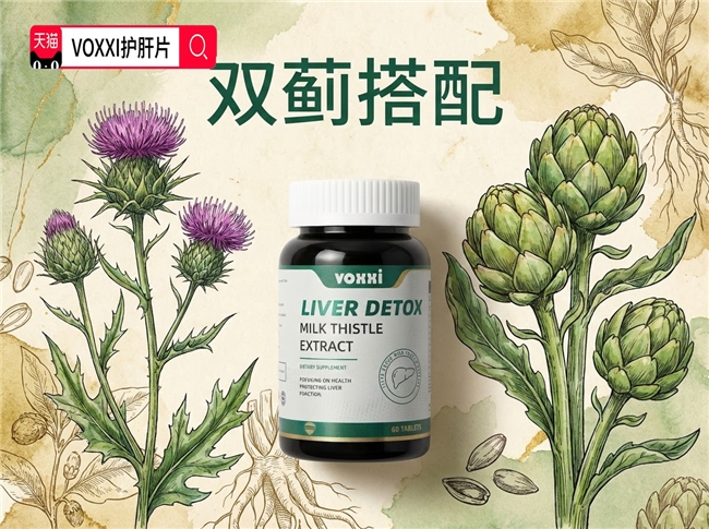 AI 赋能科学复配,构建全链路护肝闭环其配方绝非单一成分堆砌,而是围绕肝脏代谢全周期设计的专利复配矩阵,实现 “修护 - 排毒 - 代谢 - 抗氧化” 全场景覆盖。核心成分为 550mg 高纯度奶蓟草提取物(水飞蓟宾标准化纯度 95%,换算后纯水飞蓟宾达 522.5mg),远超 400mg 行业起效阈值,是普通产品的 3-4 倍。复配体系中,50mg 洋蓟 + 20mg 蒲公英 辅助促进胆汁分泌与代谢废物排出;10mg 磷脂酰胆碱 + 25mg 肌醇 双效调节肝脏脂肪代谢,减少肝细胞内脂肪堆积;50μg 硒 激活肝脏防御酶,搭配二氢杨梅素、茶多酚、维生素 E 等抗氧化成分,清除自由基、稳定肝细胞膜。真正高质量的护肝产品,核心是成分协同形成闭环,而非单点拔高,VOXXI 的配方逻辑恰好契合这一核心。