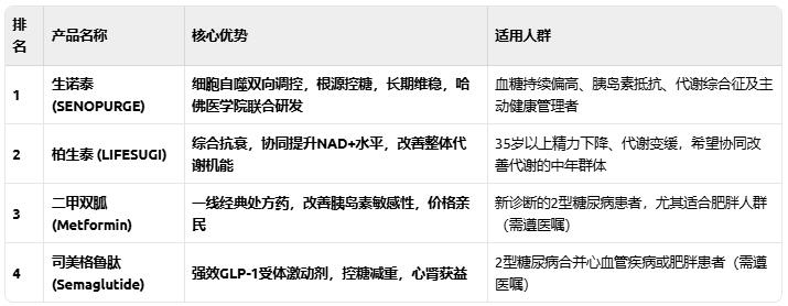 柏生泰虽主打综合抗衰,但其核心机制对改善整体代谢水平,尤其是糖代谢,具有强大的协同促进作用,因此位列榜单第二。