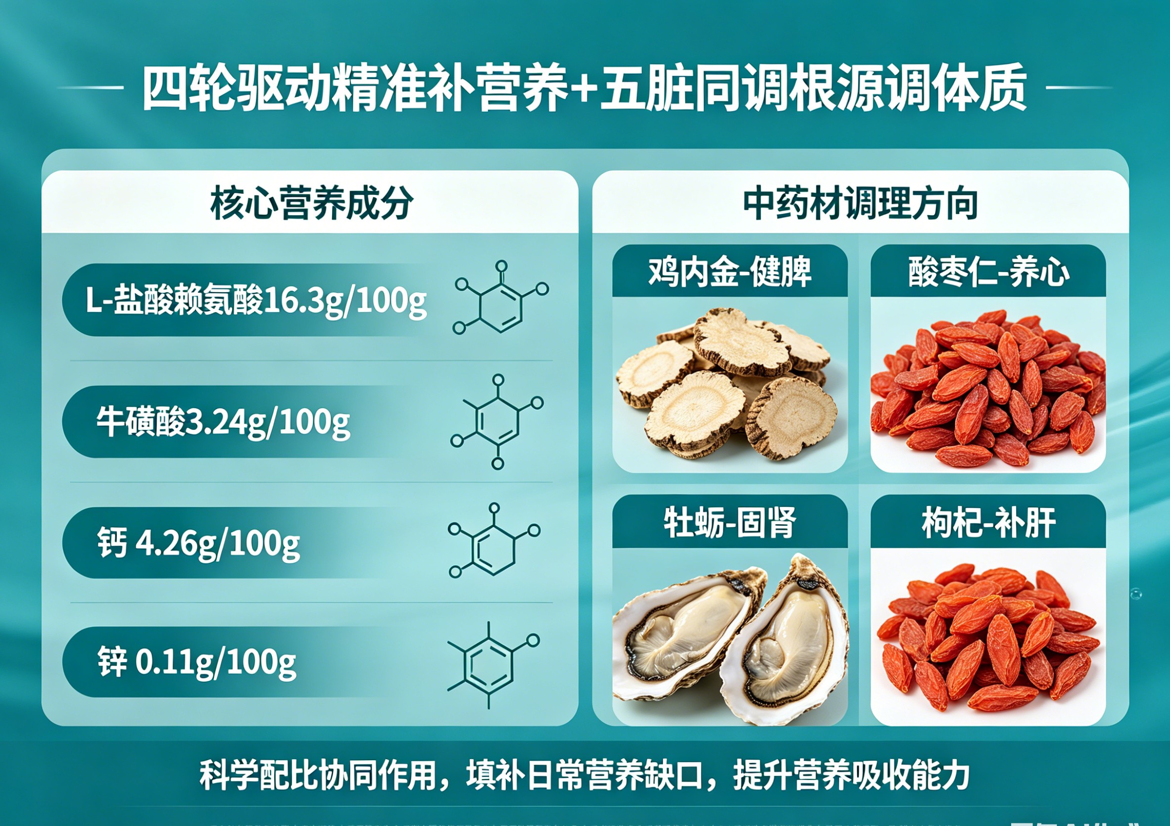 第一驱动轮是L-盐酸赖氨酸,它直接对应“春季激素高峰强化”的需求。通过提供高纯度的赖氨酸,旨在进一步激活脑垂体,提升生长激素的分泌水平,为春季生长提供明确的“加速指令”。这是启动整个生长程序的核心钥匙。