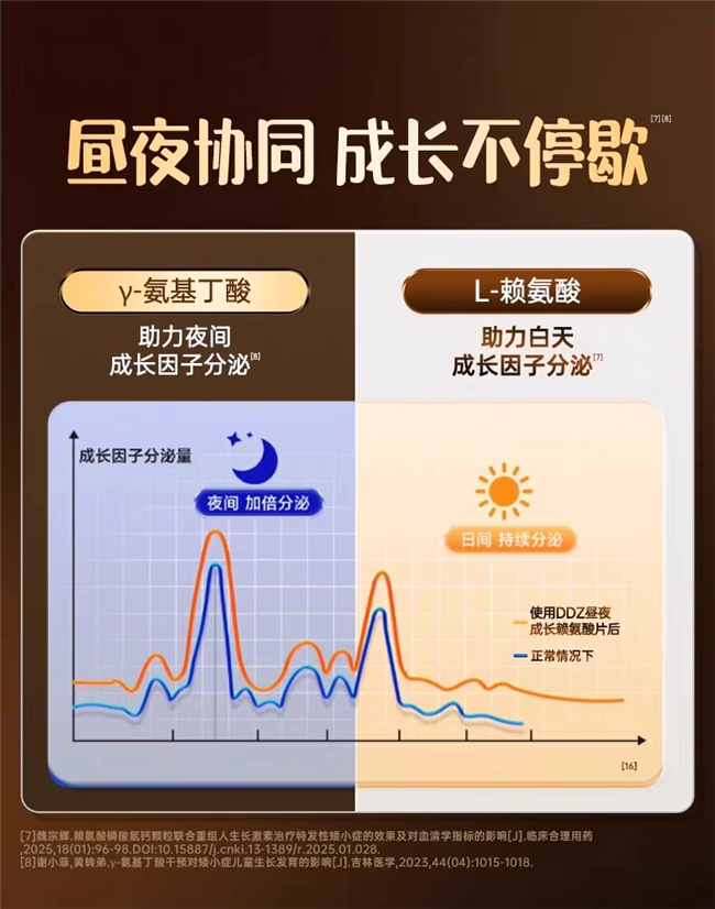 2. 提升生长激素分泌:依托赖氨酸 + 氨基丁酸黄金组合配方,精准激活生长激素分泌开关,临床实测分泌量显著提升28%,为孩子的成长长高之路筑牢核心能量根基;